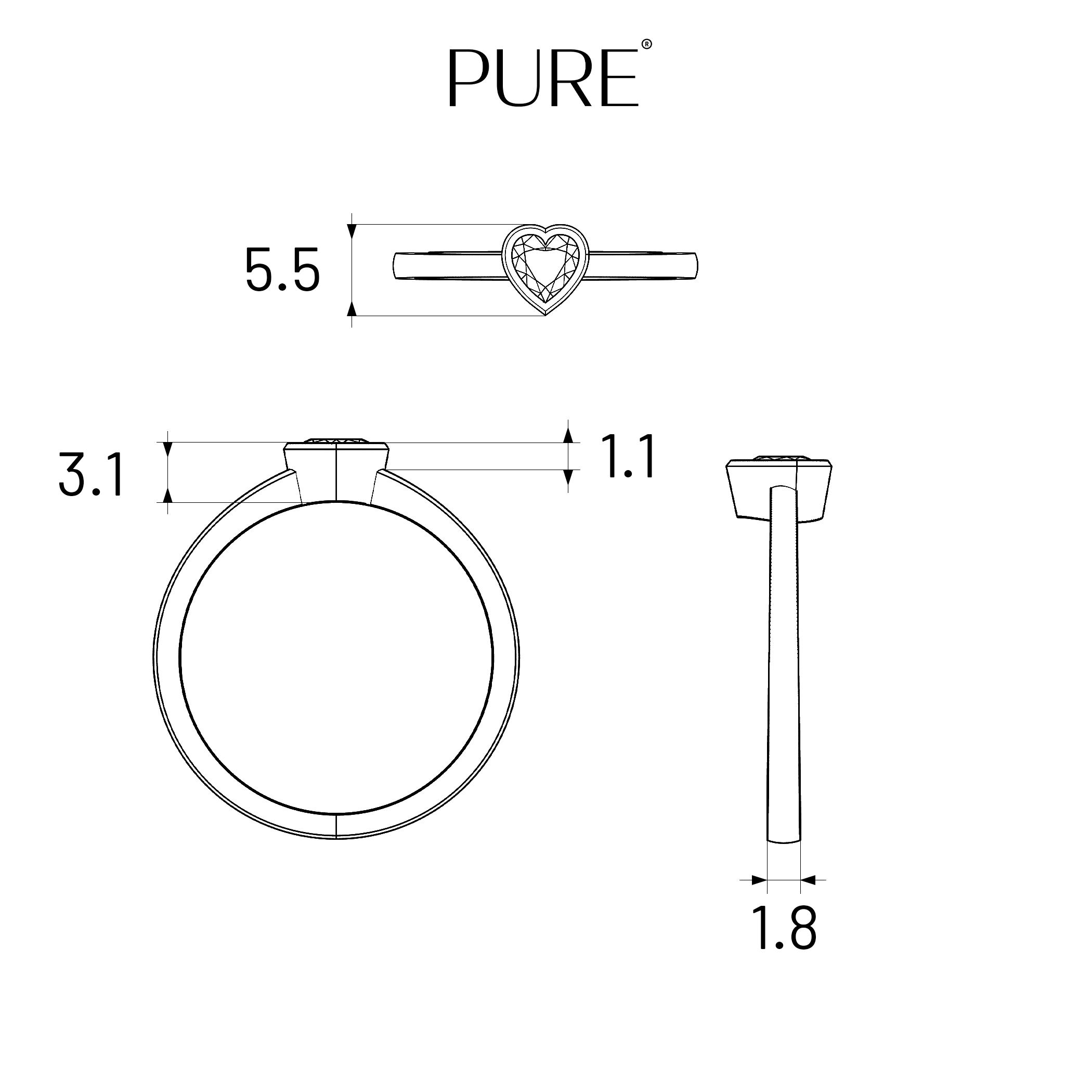 Rozměry prstýnku, které jsou uvedeny v milimetrech, jsou orientační.