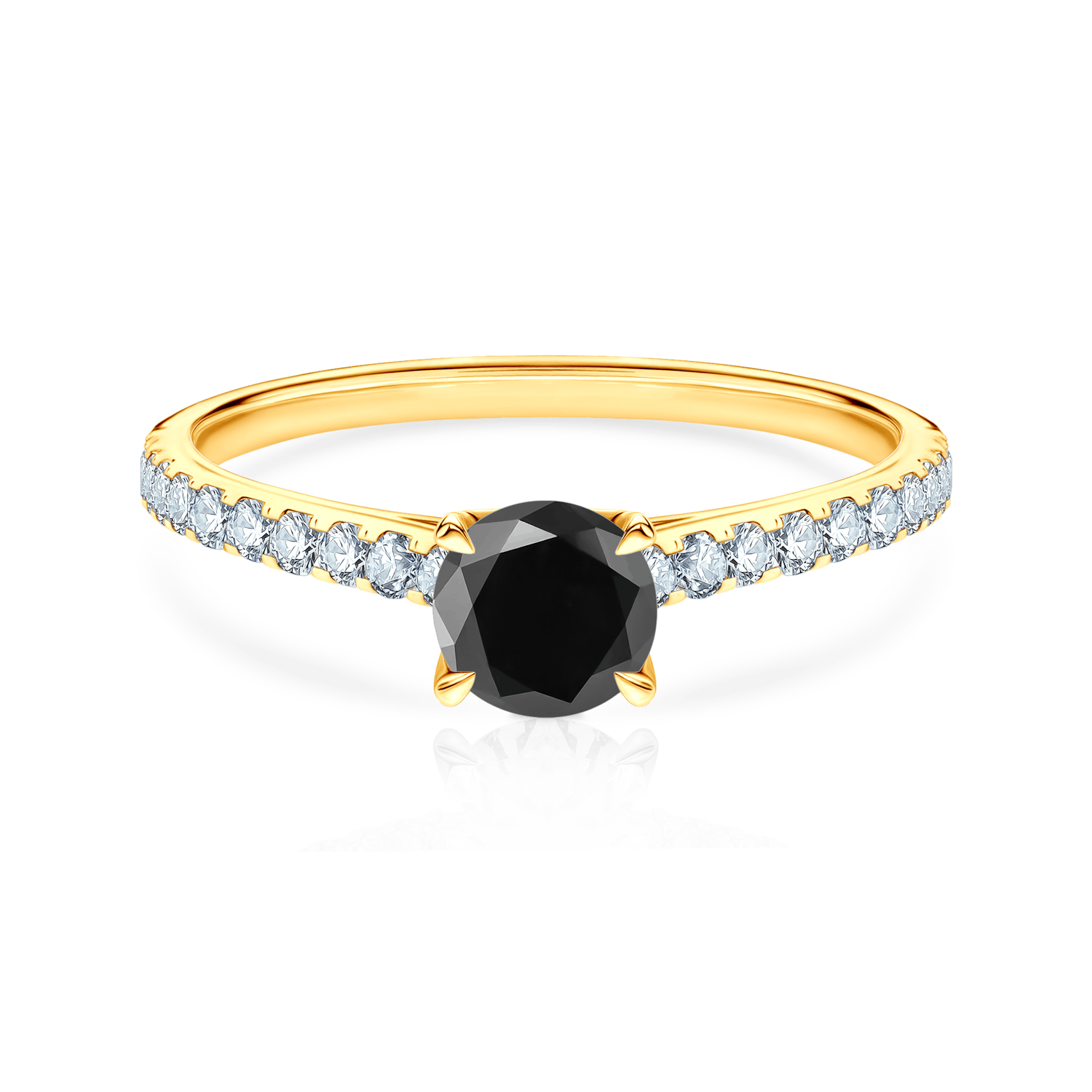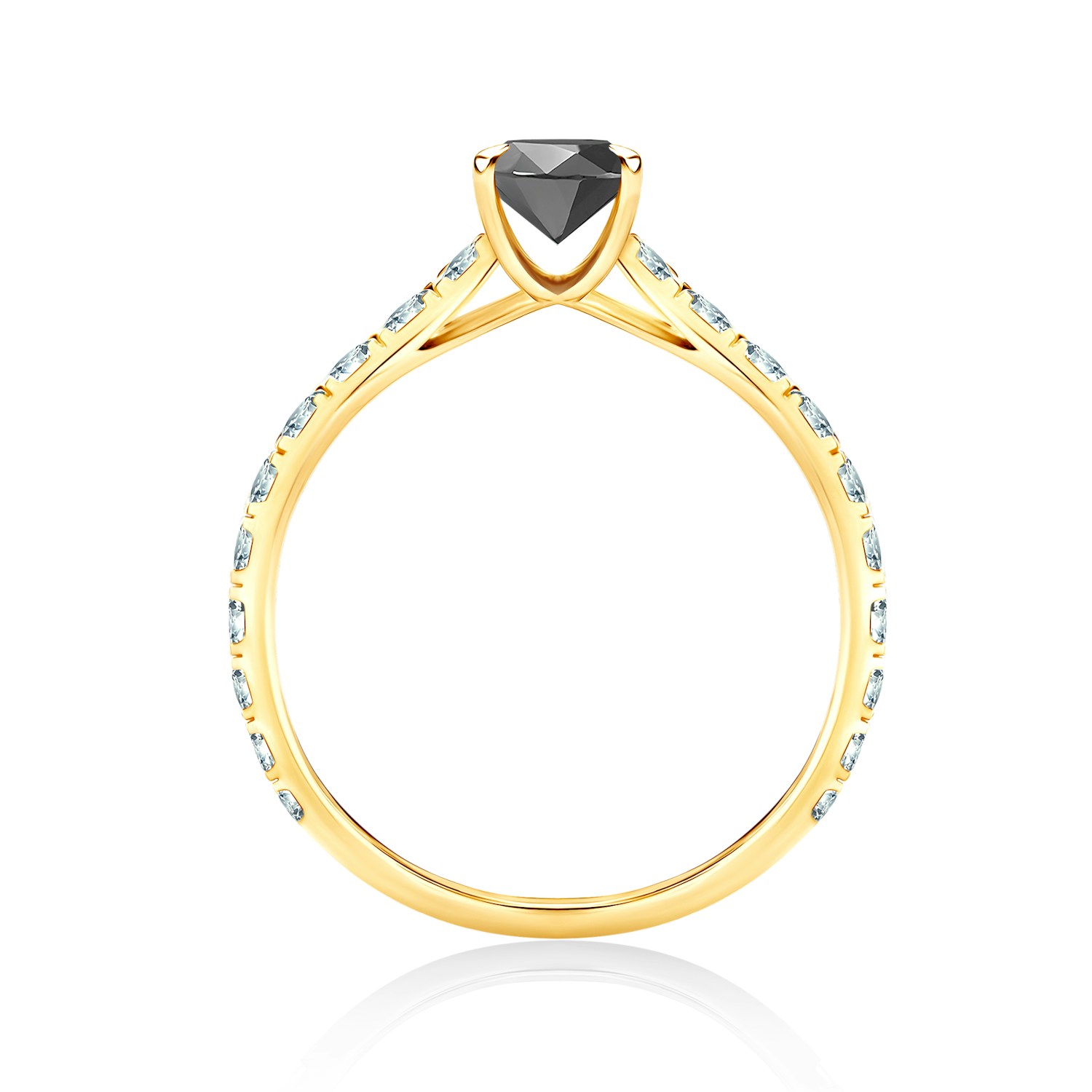 Jedná se o zásnubní prstýnek, na kterém je osazen centrální drahokam černý diamant o hmotnosti 0.30 ct. Černý diamant je v briliantovém brusu. Šína je osazena 20 diamanty o hmotnosti 0.012 ct.