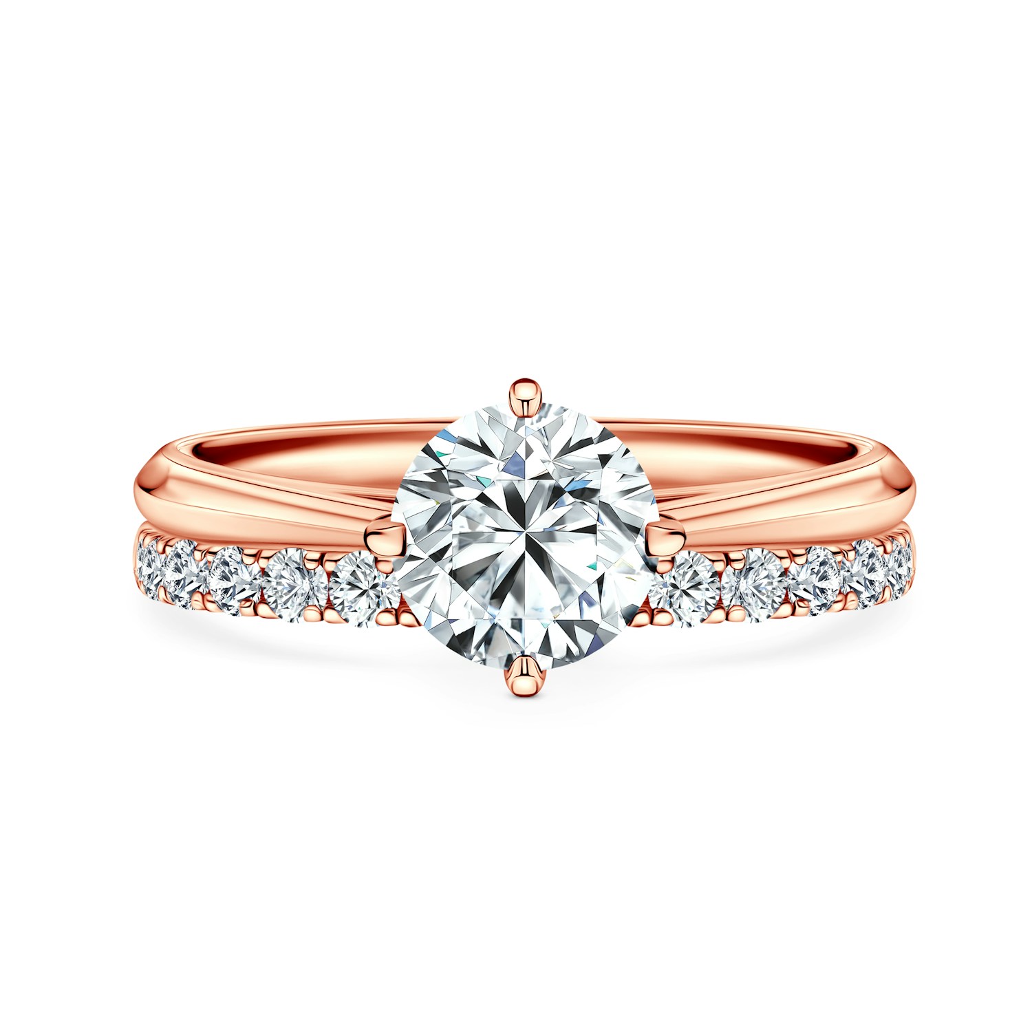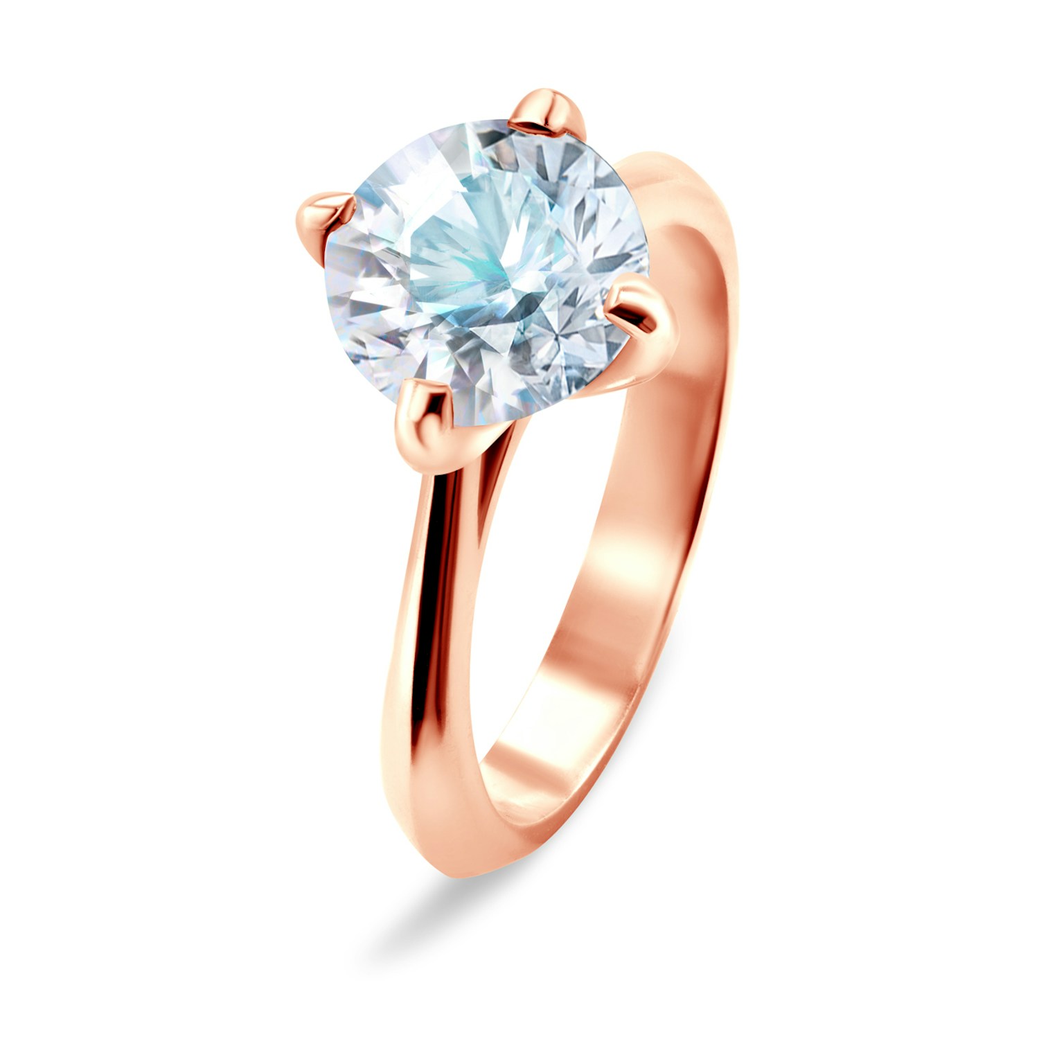 Zásnubní prsten s diamantem 3,00 ct s briliantovým brusem vysoké čistoty SI2/J, vyroben z 14-karátového růžového zlata (zkouška 0,585).